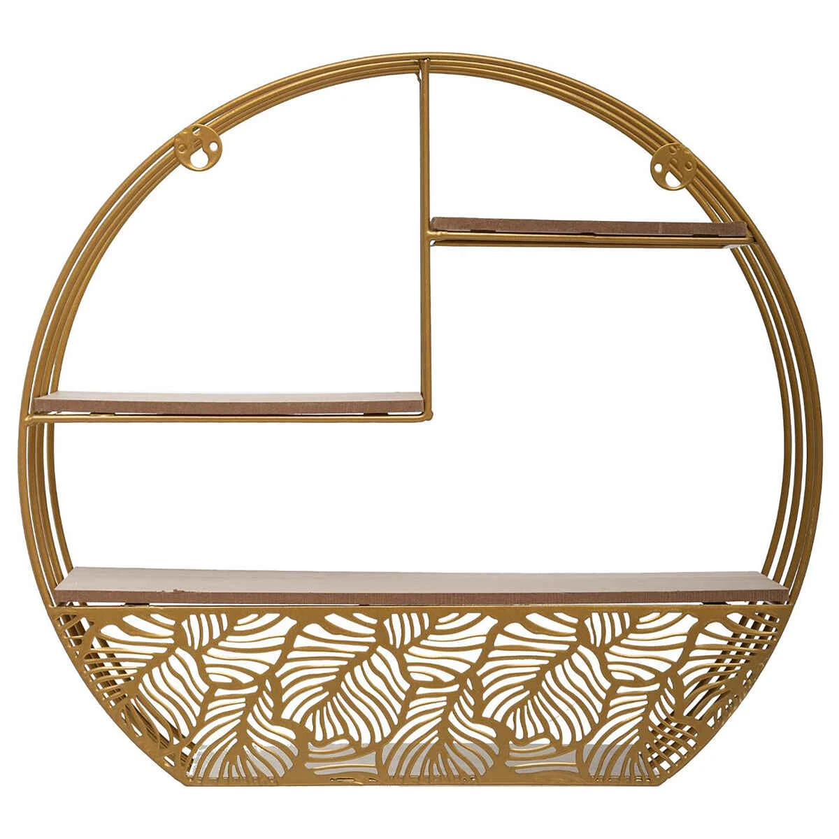 ATMOSPHERA ETAGERE MURALE BOIS METAL ROND GOLD D.39X10.3X36CM