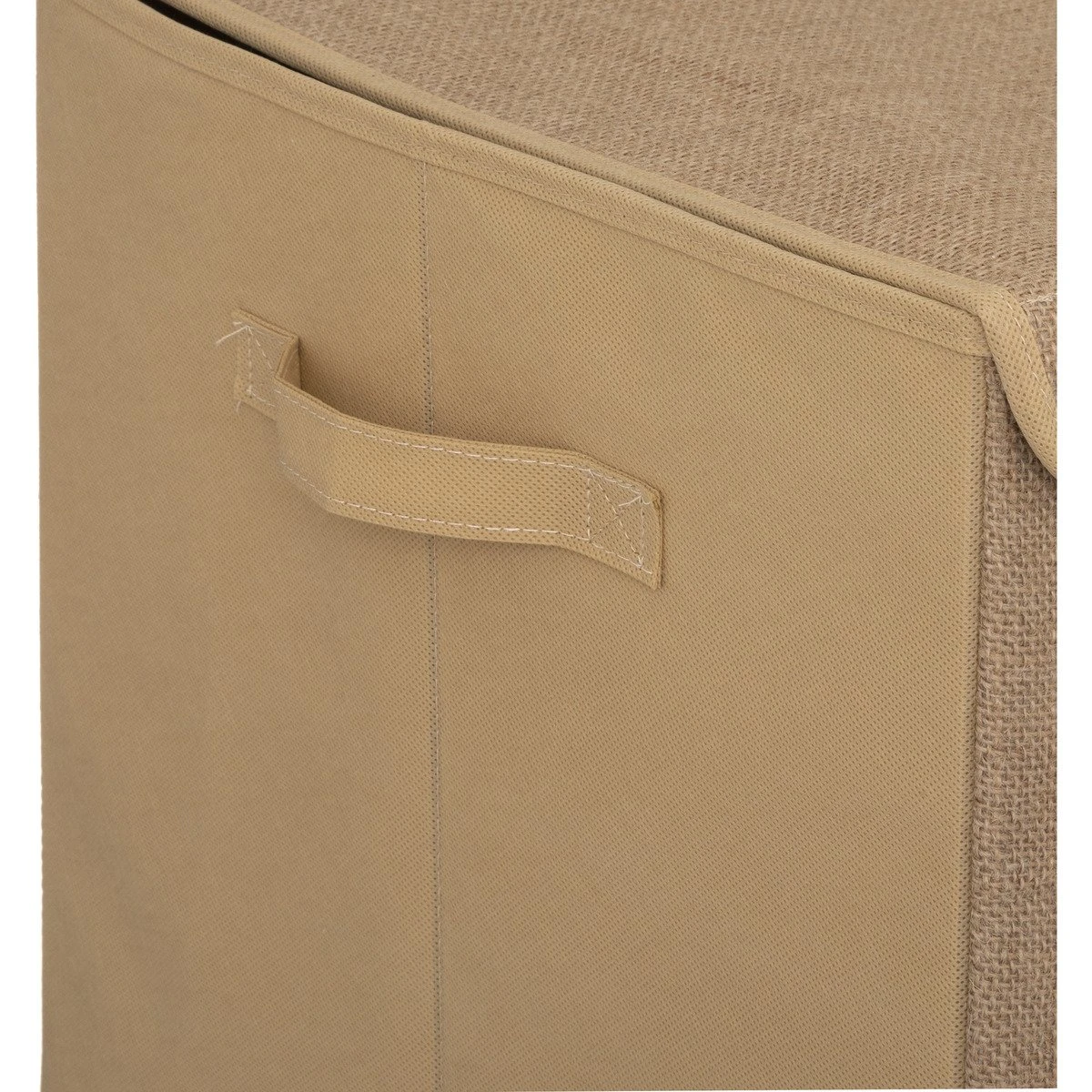Tissu intérieur / PP – Polypropylène / 3.7% / 80 g/m2 Panneau latéral / Carton / 37.2% Fond / PP – Polypropylène / 0.8% Fond / Carton / 14.4% Poignée / PP – Polypropylène / 0.6% Design spécifique / Polyester / 0.7% Passepoil / PP – Polypropylène / 1.4% Tissu extérieur / Jute / 6% Tissu extérieur / PP – Polypropylène / 13.9% Tissu extérieur du couvercle / Jute / 4.3% Tissu intérieur housse/couvercle / PP – Polypropylène / 1.4% Renfort housse/couvercle / Carton / 15.5% |