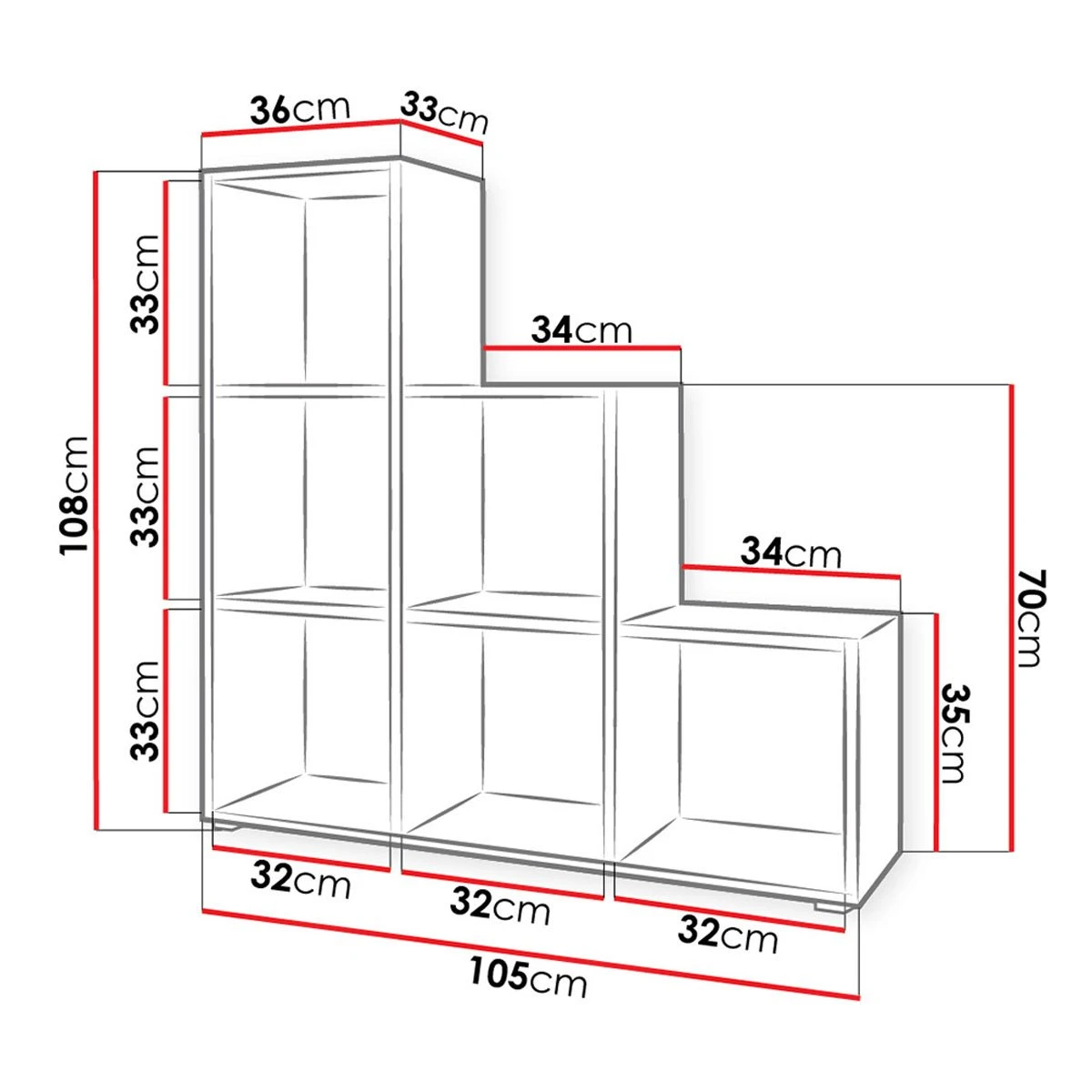 L. 105 x l. 33 x H. 108 cm |